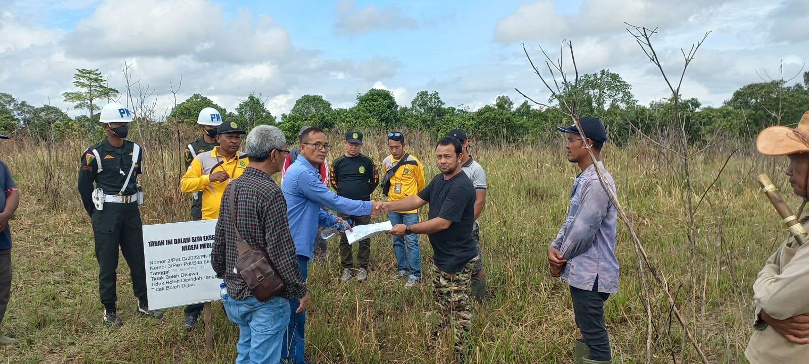 Selasa (27/12/2022) – Panitera Pengadilan Negeri Meulaboh, Bapak M. Jakfar, S.H., atas perintah Ketua Pengadilan Negeri Meulaboh telah melakukan eksekusi terhadap perkara perdata nomor 1/Pdt.G/2022/ PN Mbo jo nomor 2/Eks/2022/PN Mbo, dalam perkara antara Faisal Arif lawan Muhammd Sanam, dkk., dengan lokasi objek eksekusi terletak di desa Bukit Jaya, Kecamatan Meureubo, Kabupaten Aceh Barat.